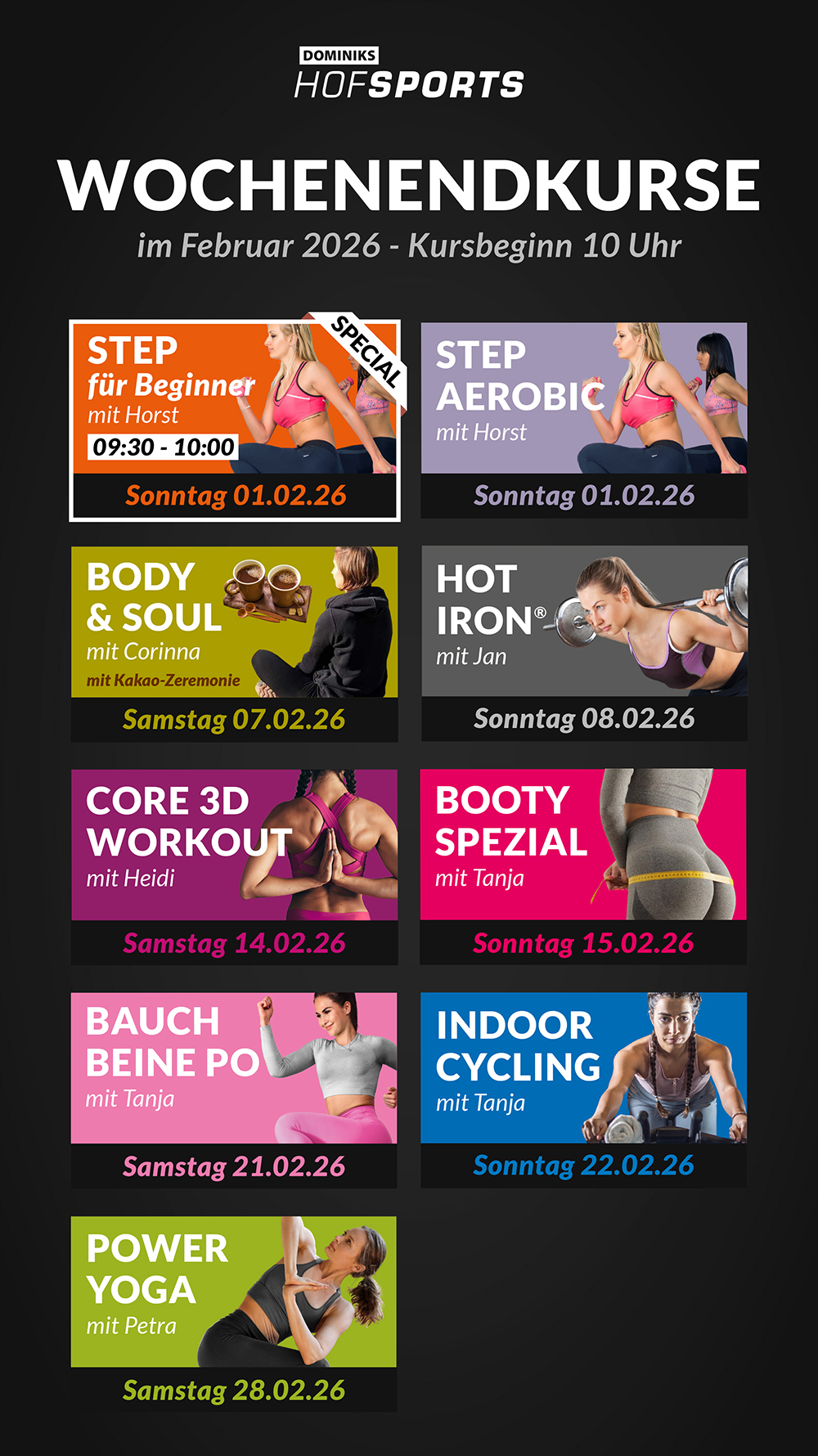 Kurse im Lady-Sports und im HofSports müssen vorher angemeldet werden!